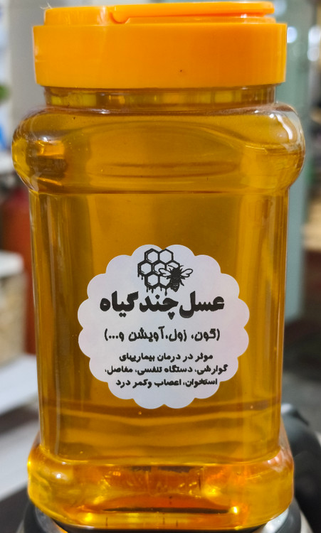 عسل ۱۰۰٪ طبیعی و خالص، بدون شکر افزوده یا مواد نگهدارنده. (در صورت امکان، نوع عسل را ذکر کنید، مثلاً عسل گون، عسل کنار و …)